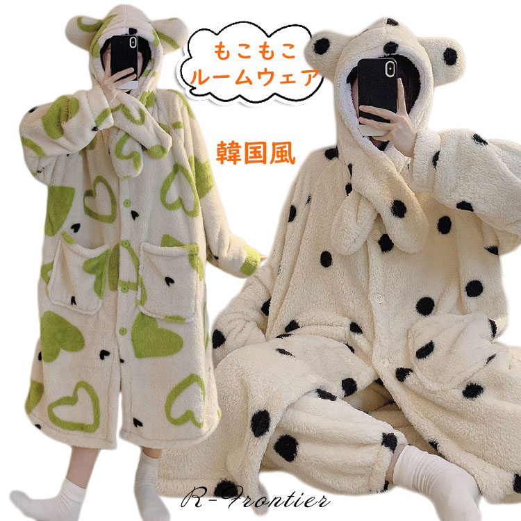 着ぐるみ パジャマ 可愛い レディース 冬用 パジャマ もこもこ 水玉柄 暖かい ワンピース ルームウェア モコモコ 長袖 女子 動物 学生 修学旅行 大きいサイズ 中学生 娘 プレゼント