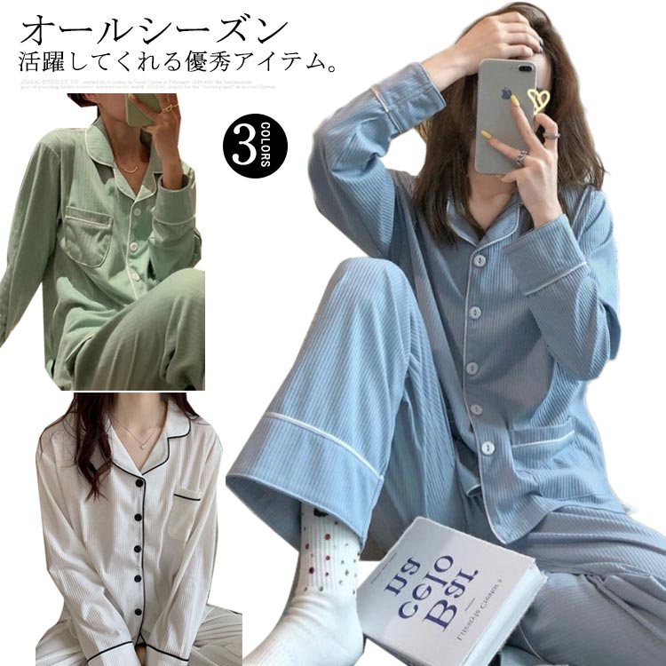 ルームウエア レディース 上下セット 長袖 寝巻き 前開き ペア カップル 部屋着 綿 トップス ロングパンツ コットン ナイトウエア 通気性 ゆったり 大人 吸汗