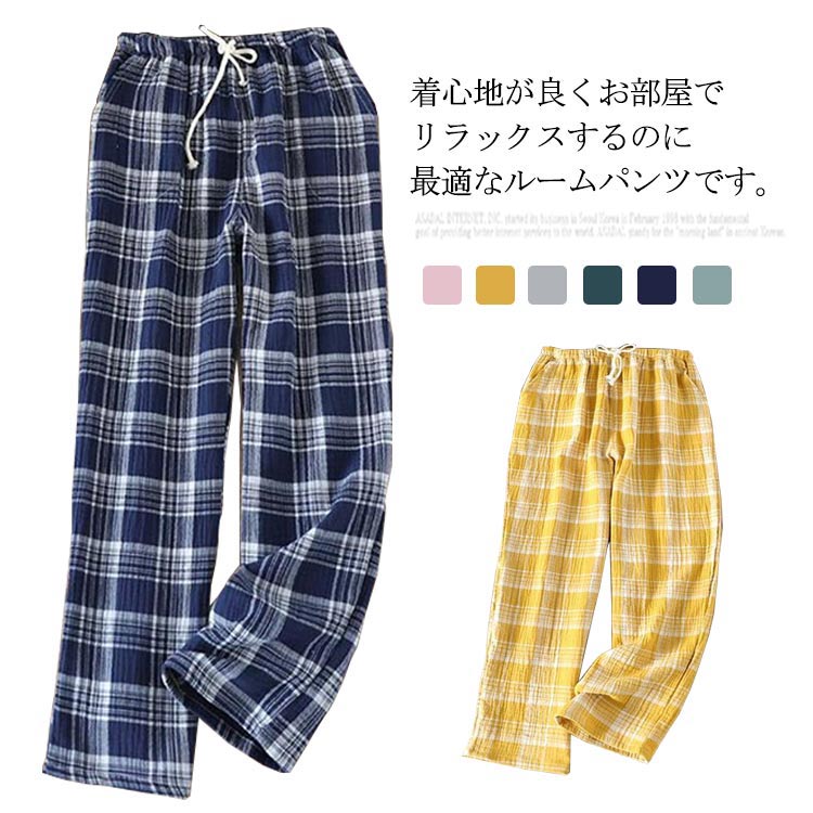 レディース ルームウェア コットン 部屋着 チェック柄 通気性 お洒落 春秋 快適 ポケット付き 柔らかい パジャマパンツ