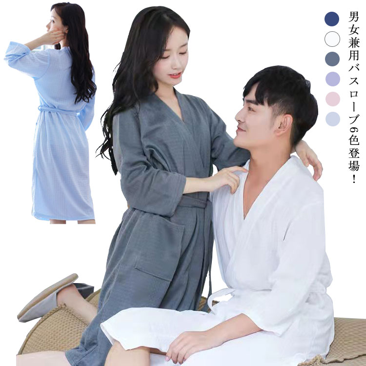 バスローブ 5色 男女兼用 ナイトガウン ペア ルームウェア 七分袖 風呂 通気 温泉 寝巻き 春夏秋用 パジャマ
