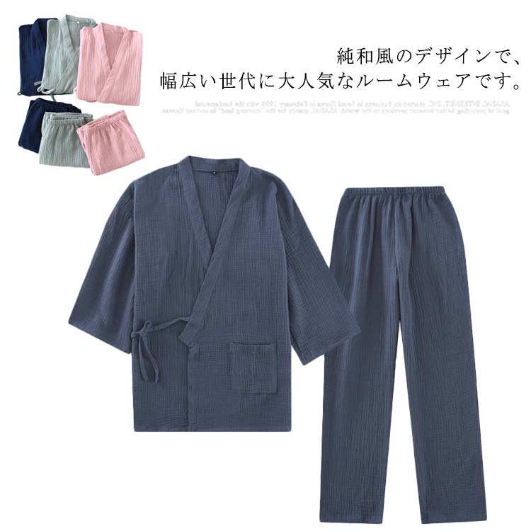 レディース ルームウェア 夫婦 部屋着 お風呂 自宅用 温泉 ホテル 上下セット カップル 男女兼用 和風 甚平 浴衣 前開き