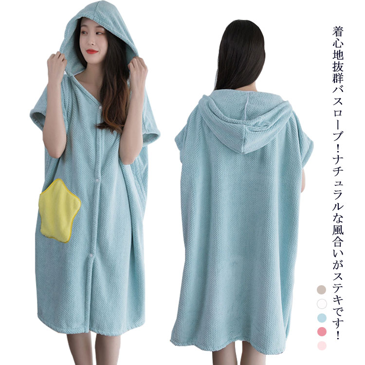 バスローブ 半袖 膝丈 ミモレ丈 ナイト ホームウェア 部屋着 着れる ワンピース風 吸水 速乾 吸収 お風呂 プール ガウン 寝巻き パジャマ 寝間着 レディース 水泳 シャワー