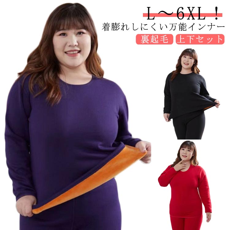 L~6XL 裏ボア ヒートテック レディース あったかインナー 大きいサイズ 巨厚蓄 吸湿発熱 防寒肌着 上下セット 長袖シャツ 裏起毛 ロングタイツ インナーシャツ 厚手 保温インナー 抗菌防臭加