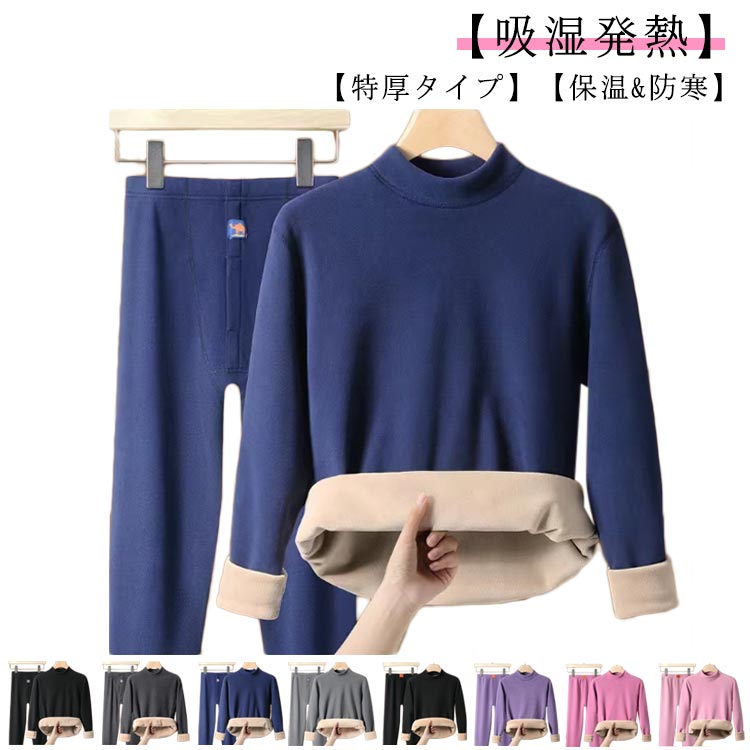 ~4 裏起毛 ヒートテック メンズ レディース ハイネック 厚手 上下セット あったかインナー 防寒肌着 長袖シャツ ロングタイツ 前開き 吸湿発熱 防寒 保温インナー大きいサイズ 下着 クルー