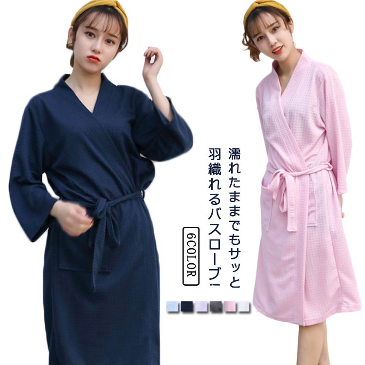 バスローブ 男女兼用 春 秋 夏 薄手 コットン 寝間着 寝巻き ワッフル生地インナー 下着 ナイトウェア レディース ナイトウェア ルームウェア バスローブ