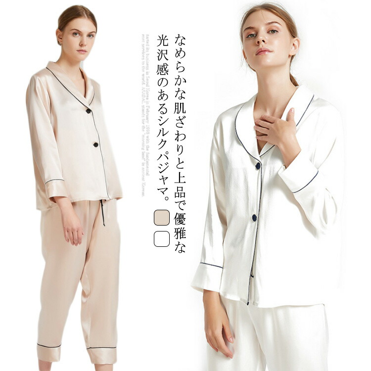 パジャマ シルク 上下セット レディース 長袖 長ズボン 2点セット 部屋着 ナイトウエア ルームウエア 前開き