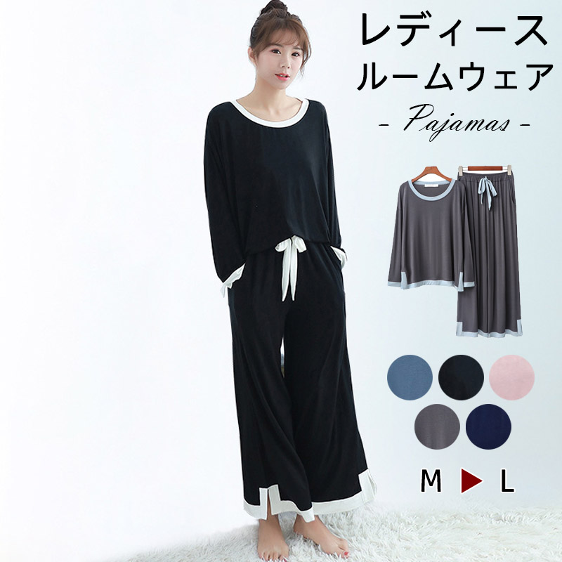 ルームウェア レディース 部屋着 セットアップ 上下 長袖 ルームウエア ロングパンツ 春夏 肌触りがよい 部屋着 セットアップ レディース テレワーク リブ リラックス