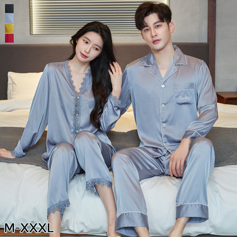 冷感 サテン ペア パジャマ お揃いルームウェア お祝い 部屋着 寝巻き 防寒対策 彼女 彼氏 夫婦 記念日♪ プレゼントにお勧めです♪
