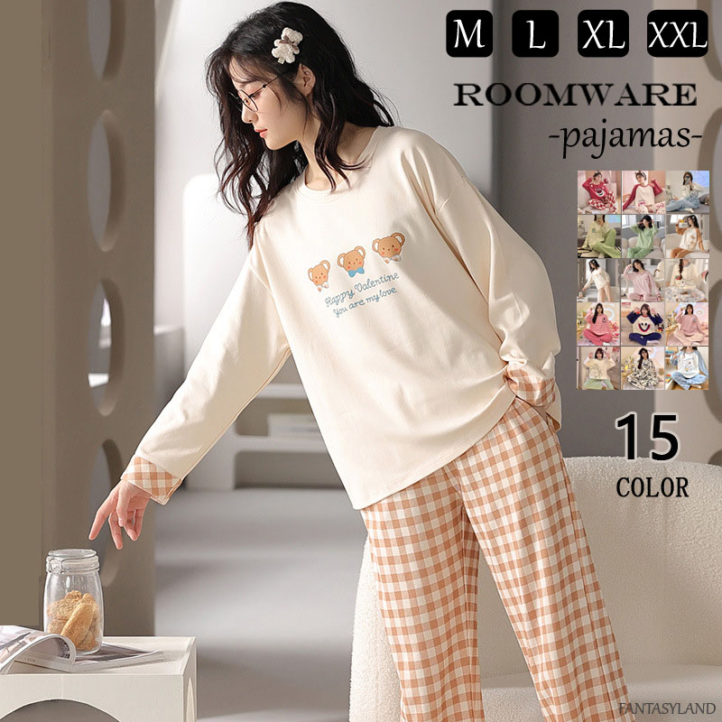 パジャマ レディース ルームウェア 綿セットアップ 長袖 トップス&ロングパンツ コットン 部屋着 スウェット 上下セット パジャマ 春 秋 カットソー きれいめ 大人 カジュアル