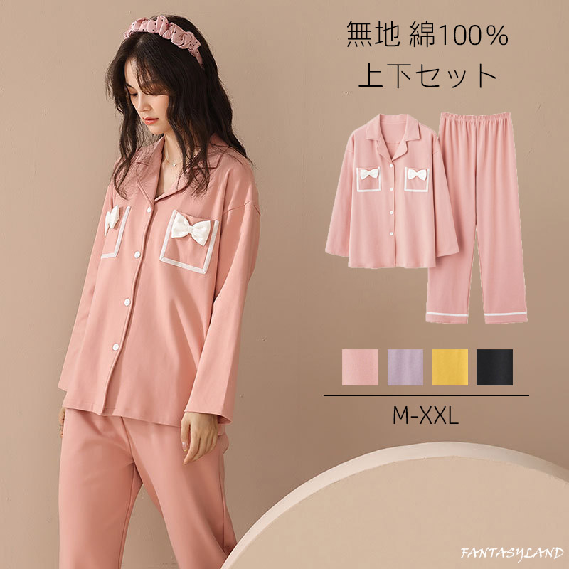 パジャマ レディース 綿 長袖 ルームウェア 無地 ソフト加工 コットン素材 シャツパジャマ 新生活 かわいい
