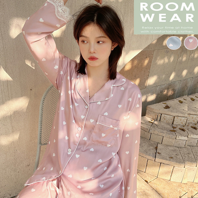 サテンパジャマ ルームウェア 高級 パジャマ 長袖 セットアップ上下セット サテン サラサラ レース かわいい おしゃれ 部屋着 安眠 レディース 春 夏 秋 快適 ラクチン プレゼント 前開き 上品
