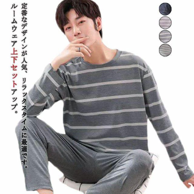 ルームウエア メンズ 夏 春 大きいサイズ 部屋着 ボーダー柄パジャマインナー 下着 ナイトウェア メンズ ナイトウェア ルームウェア ルームウェア 上下セット