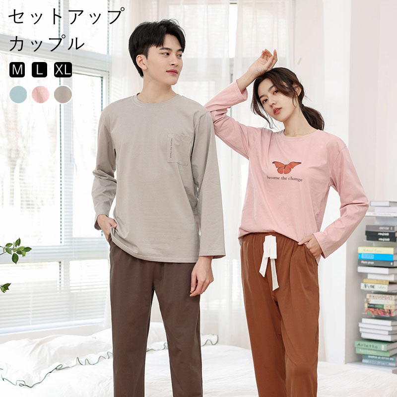 パジャマ メンズ レディース ルームウェア 綿100% セットアップ 長袖 トップス&ロングパンツ コットン カップル 部屋着 スウェット 上下セット パジャマ 春 夏秋 カットソー きれいめ 大人