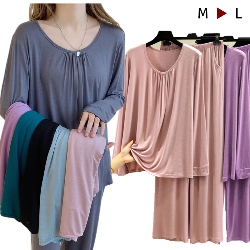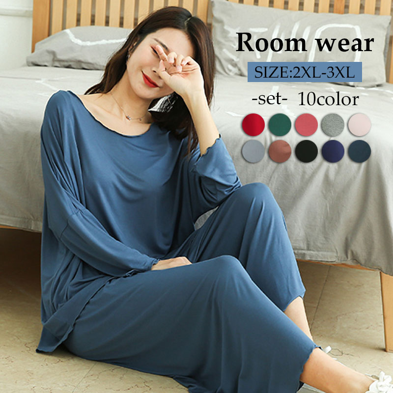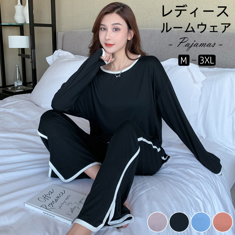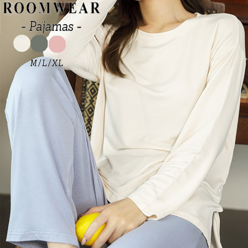 ルームウェア レディース パンツ 夏 ゆるテロ 長袖 上下セット パジャマ 部屋着 寝間着 長ズボン 春 オールシーズン リラックス 大人可愛い プレゼント シンプル 無地 カットソー カジュアル 入