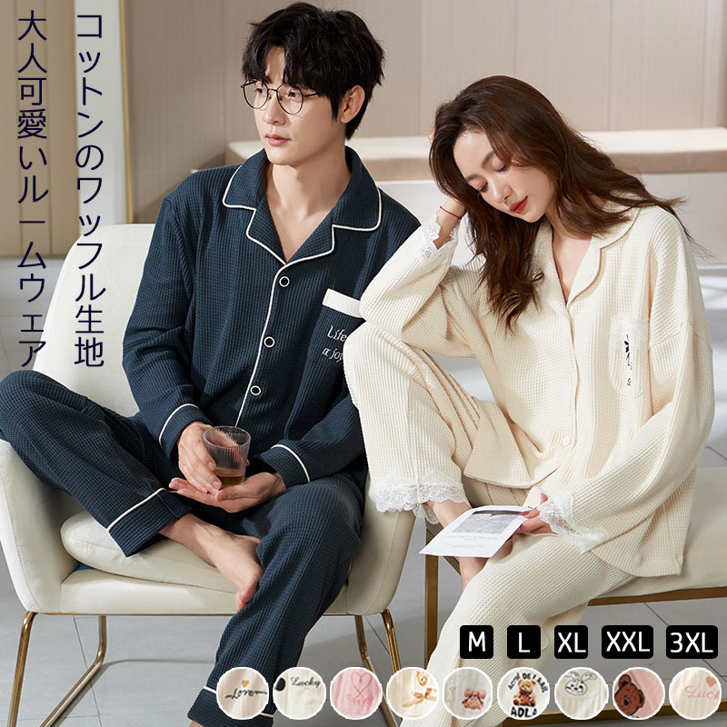 ペアルック ルームウェア 春 秋 冬 カップルパジャマ ペアパジャマ プルオーバー かわいい お祝い 部屋着 寝巻き 彼女 彼氏 夫婦 記念日♪ プレゼントにお勧めです♪