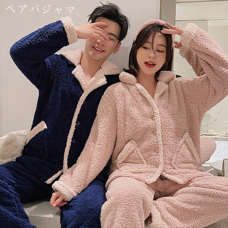 ペア パジャマ メンズ レディース ペアパジャマ もこもこ 長袖 ルームウェア 大人用 長袖 上下セット 秋冬 イベント 部屋着 お揃い 夫婦 出かける クリスマス