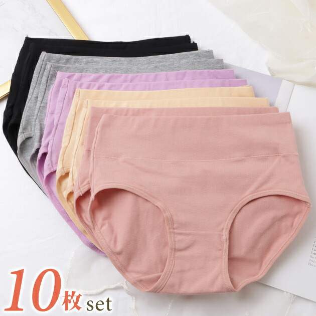 セットでお得♪ショーツ 7色7枚セット ハイウエスト ショーツ レディース 下着 ストレスフリー シンプル マタニティ コットン 快適 無地 アンダーウェア スタンダード グリーン ライトグリーン グ