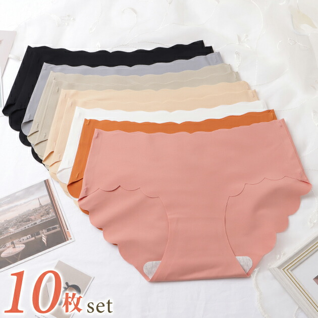 スカラップ ウエーブ シームレス ショーツ 女性 レディース 下着 肌着 インナー 春 夏 秋 冬 オールシーズン 綿 コットン なめらか ゆったり シンプル ミニマル 単色 無地 弾力 伸縮 通気性