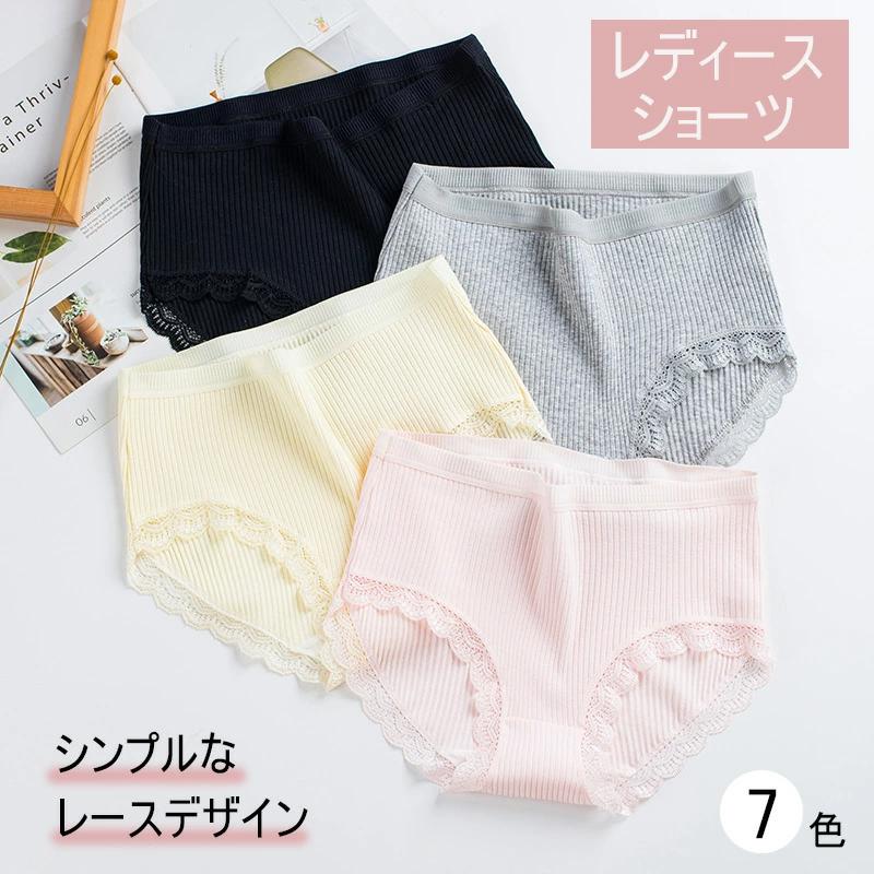 ショーツ レディースパンツ 下着 ハイウエスト レディースショーツ ストレスフリー シンプル レース コットン 快適 無地 アンダーウェア