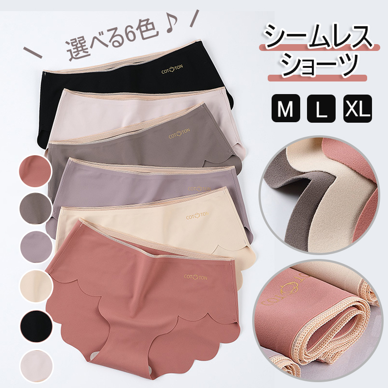 シームレス ショーツ レディース シームレスパンツ スカラップカット かわいい オシャレ コットンパンツ インナー コットン 伸縮性 快適 シンプル ラインが出ない スタンダード 下着 通気性 無地