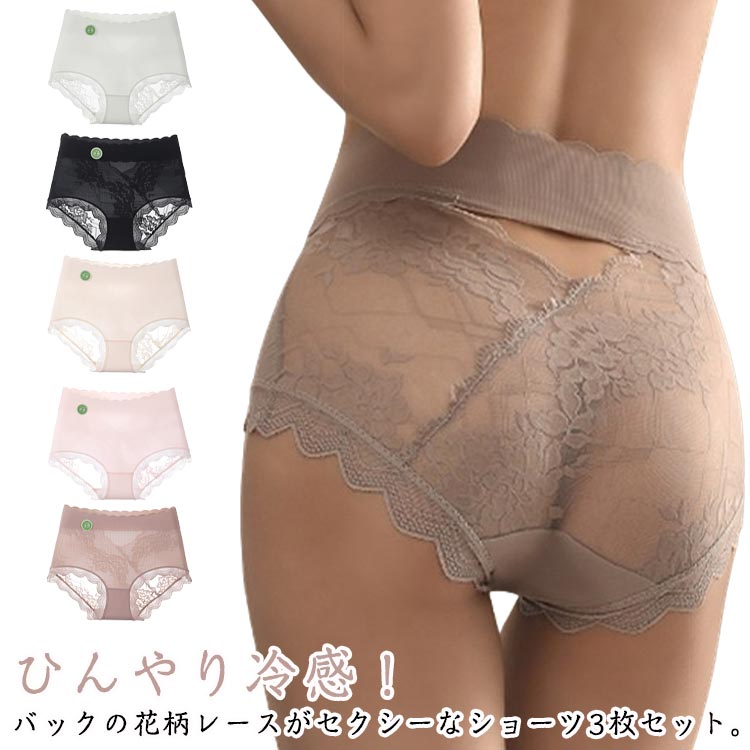 ショーツ 3色3枚セット ハイウエスト ショーツ レディースショーツ 花柄レース 肌着 下着 薄手 ストレッチ 大きいサイズ ヒップアップ