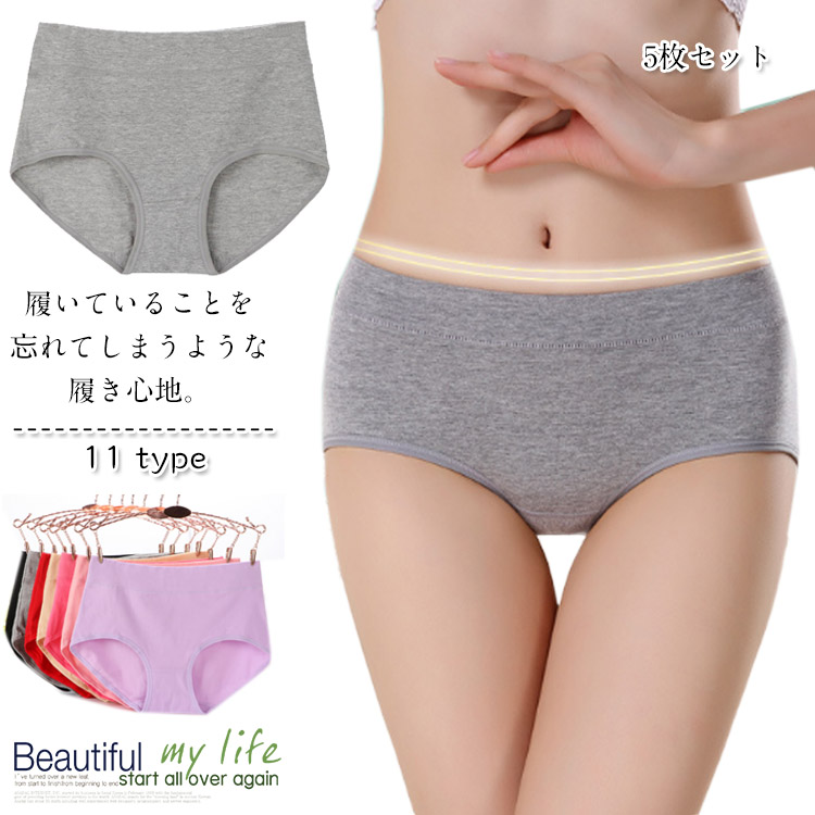 ハイウエストショーツ 5枚セット 深ばき お腹 引き締め お尻すっぽり 無地 女性 下着 温 対策 お腹スッポリ温活ショーツ