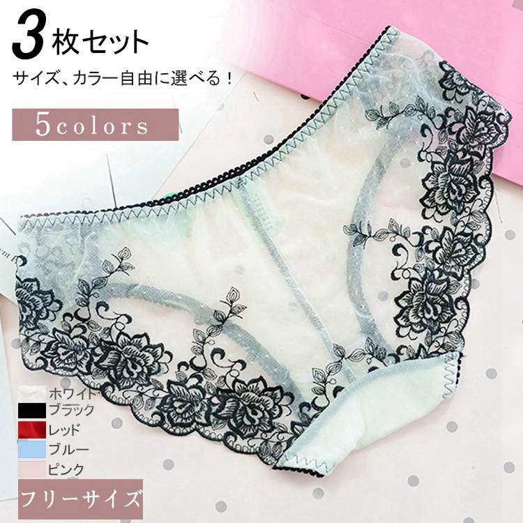 かわいい レディース ショーツ 花柄 シースルー 総レース ローライズショーツ 3枚セットインナー 下着 ナイトウェア レディース インナー 下着 ランジェリー ショーツ スタンダード