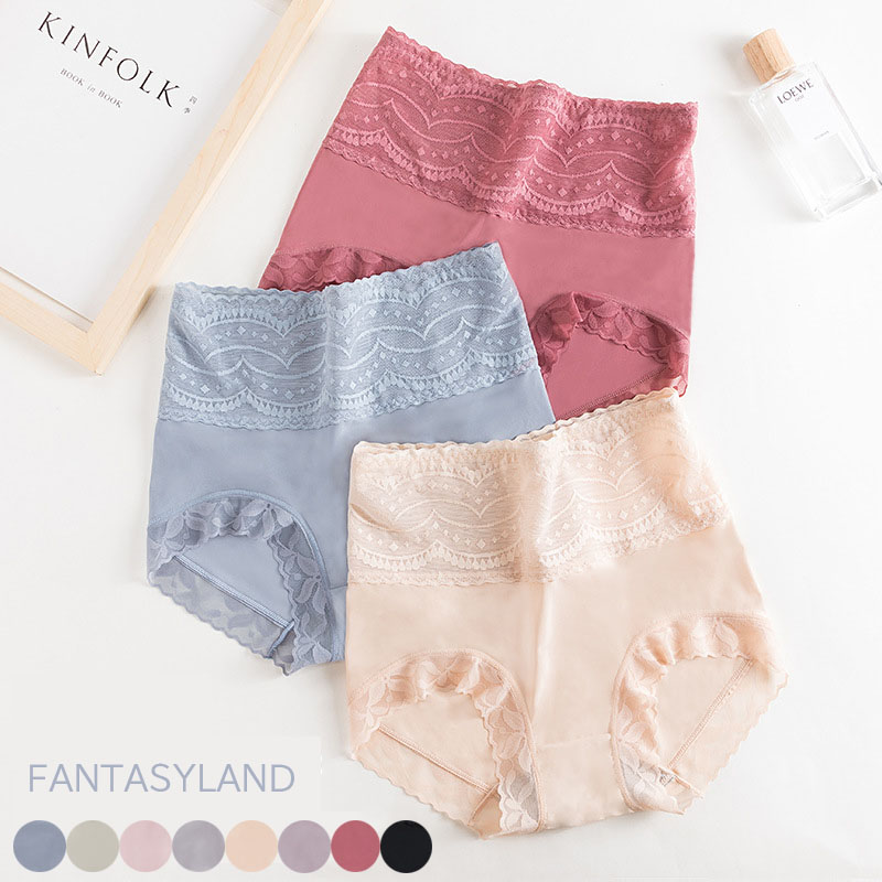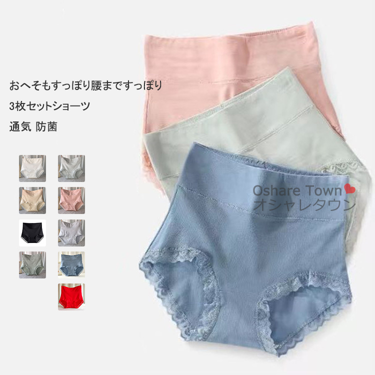 2点セット レースショーツ レディース 下着 単品 パンティー 綿 コットン ハイウエスト 股上深め きれいめ ショーツ ベーシック デイリー ストレッチ 伸縮性 通気性 ブラック グレー ピンク ラ