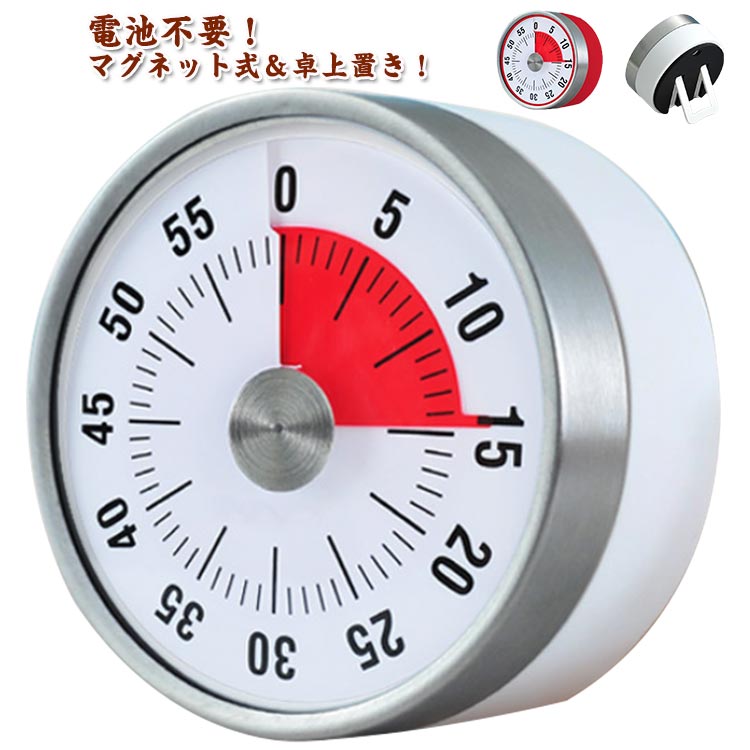 電池不要 キッチンタイマー アナログ ステンレス 料理 調理タイマー 手動 タイマーキッチン用品 食器 調理器具 調理器具 製菓器具 計量 タイマー 温度計 キッチンタイマー