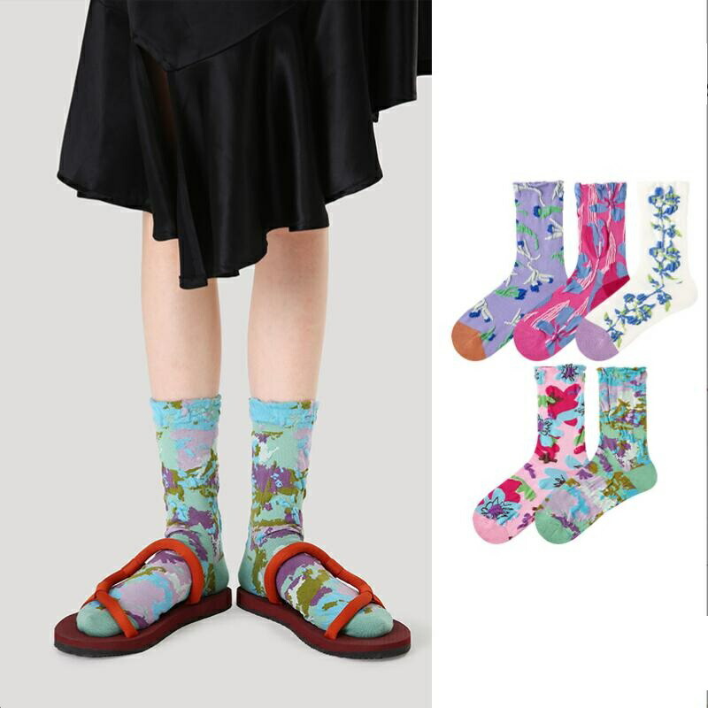 靴下 ソックス 5足組セット レッグウェア 柄 花柄 レディース カジュアル おしゃれ 誕生日 プレゼント まとめ買い 男女兼用 くつした