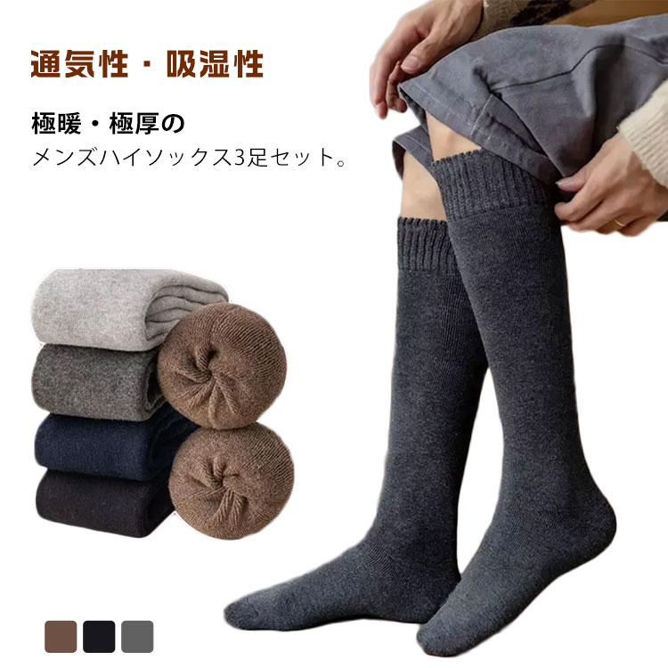 靴下 メンズ 冬 厚手 裏起毛 極暖 極厚 ソックス ハイソックス ロングソックス 保温 紳士 男性 メンズソックス あったか靴下 紳士靴下