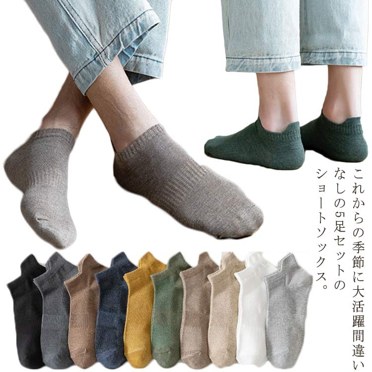 脱げない 綿 通氣性 5足セット 靴下 ソックス スポーツ カジュアル 靴ずれ防止 紳士用 スニーカー 四季適用