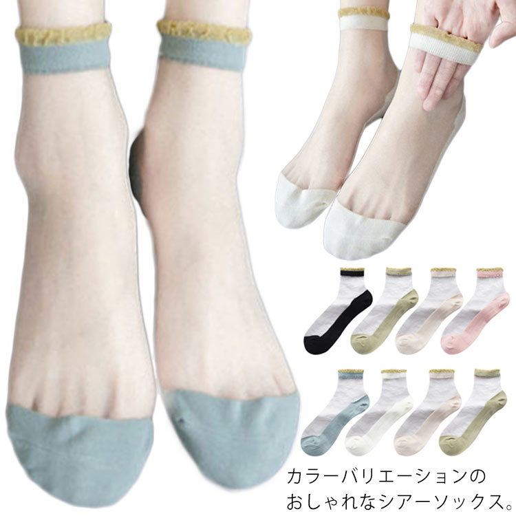 レディース シースルー 夏 くるぶし 4点セット ソックス フリル 綿靴下 おしゃれ 靴下 靴下インナー 下着 ナイトウェア レディース 靴下 レッグウェア 靴下