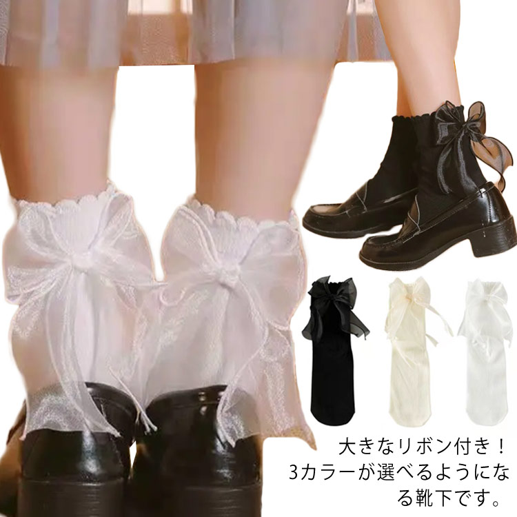 ソックス 女の子 おしゃれ くつ下 靴下 レディース かわいい 可愛い コットン 春 夏 ミドルソックス リボン クルーソックス