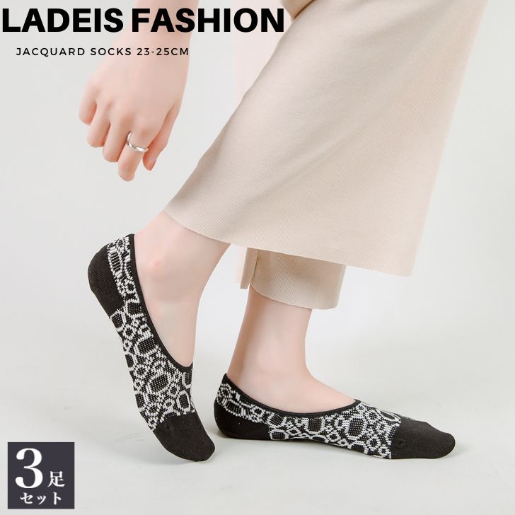 靴下 レディース おしゃれ フットカバー 黒 浅履き 夏用 夏 パンプスカバー かわいい ベリーショート 幾何柄 脱げない 脱げにくい くつした ブラック 23-25cm
