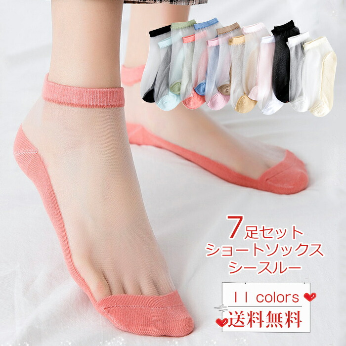 ショートソックス 無地 7足セット シースルー 春夏秋 おしゃれインナー 下着 ナイトウェア レディース 靴下 レッグウェア 靴下