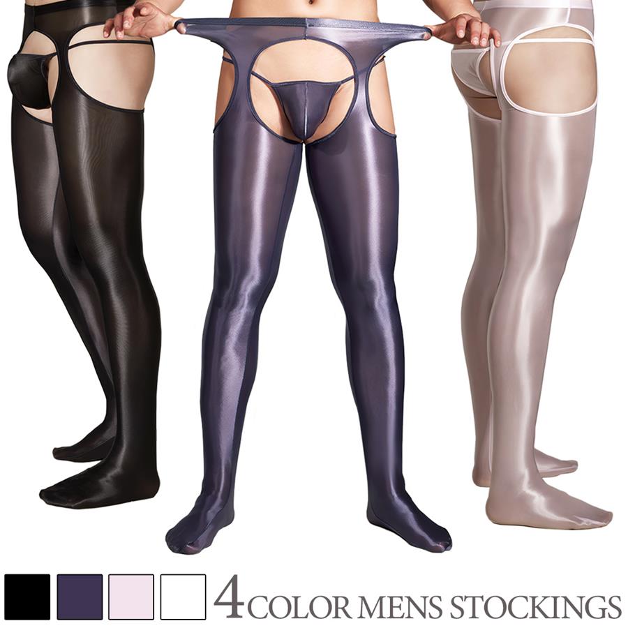 メンズ セクシー サスペンダータイツ ストッキング 男 男性 下着 インナー オープンクロッチ タイツ ランジェリー 穴あき 光沢 Oバック ストレッチ ツルツル スベスベ