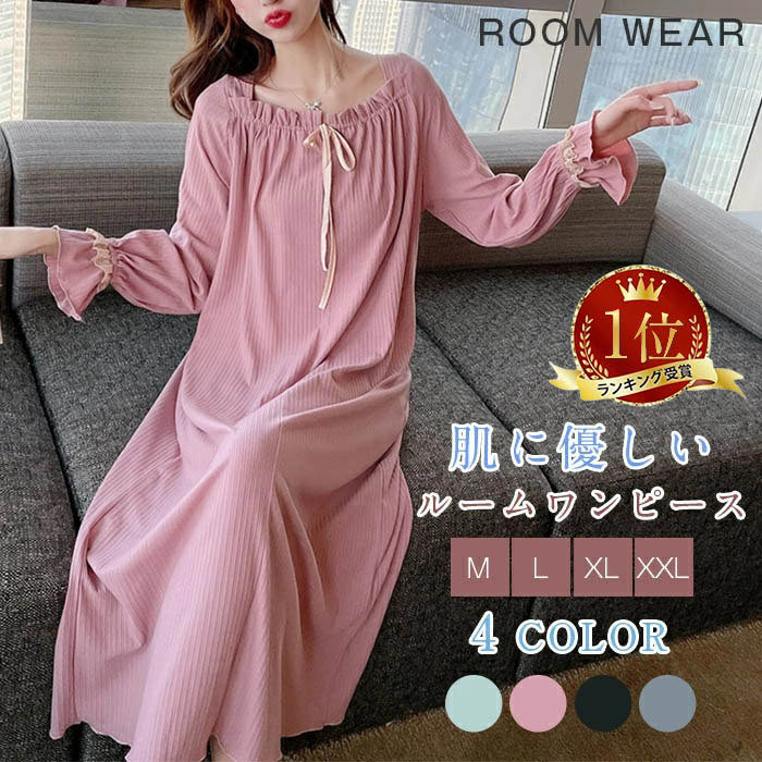 肌に優しい 着心地 ネグリジェ パジャマ ルームワンピース レディース 夏 寝巻き ルームウェア ロング丈ネグリジェ ワンピース 半袖 無地 ナイトウェア