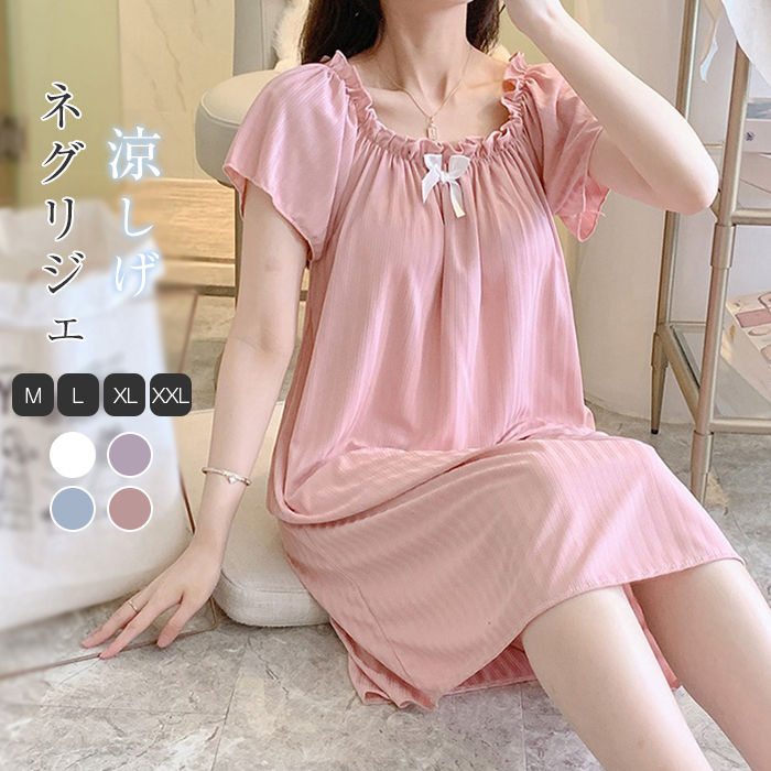 ネグリジェ 半袖 ルーム ワンピース ネグリジェ 可愛い パジャマ ルームウェア 姫系 レディース ナイトウェア 柔らか フリル ゆったり ライン 可愛い 春 夏 セクシー 寝間着 部屋着 母 プレ