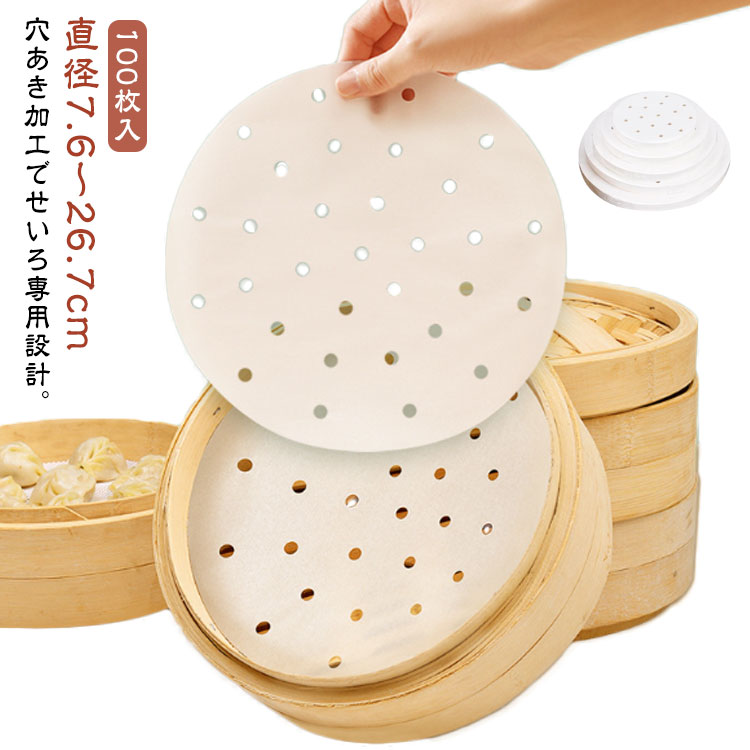 蒸篭 セイロ用調理用紙 ラウンド型 穴あり せいろ専用クッキングシート セイロ用紙 蒸し器用 シート ペーパー 使い捨て せいろシート セパレート紙