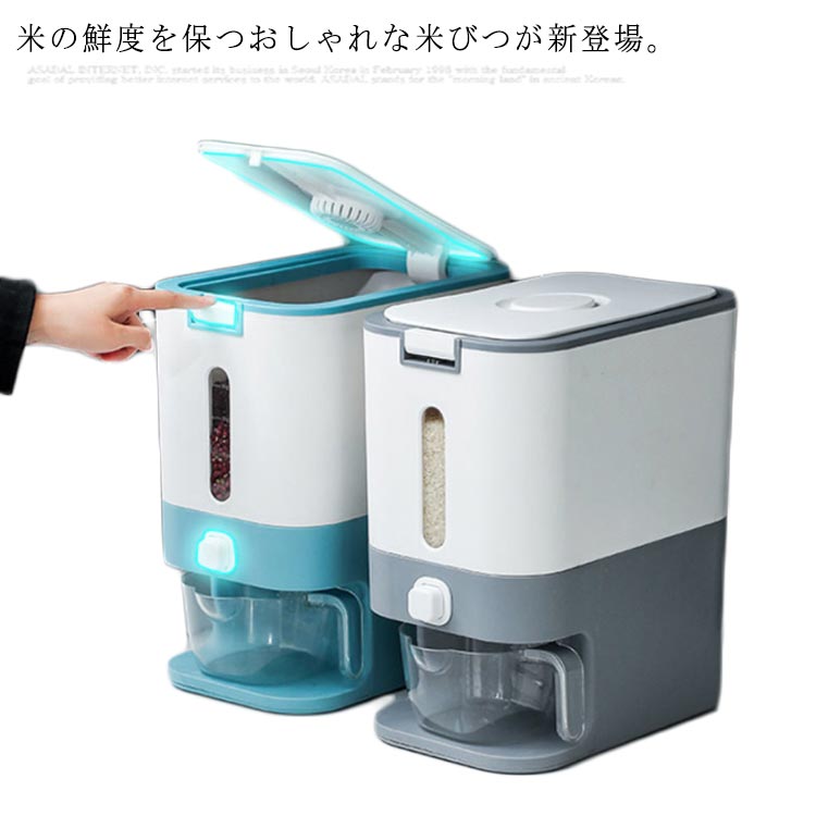 米びつ おしゃれ スリム ボタン押しタイプ ライスディスペンサー 保存容器 米 密閉保存 米ストッカー
