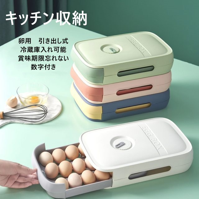 卵ケース 引き出しタイプ 大容量 冷蔵庫用 数字目盛り 2個セットキッチン用品 食器 調理器具 保存容器 調味料入れ 保存容器 キャニスター