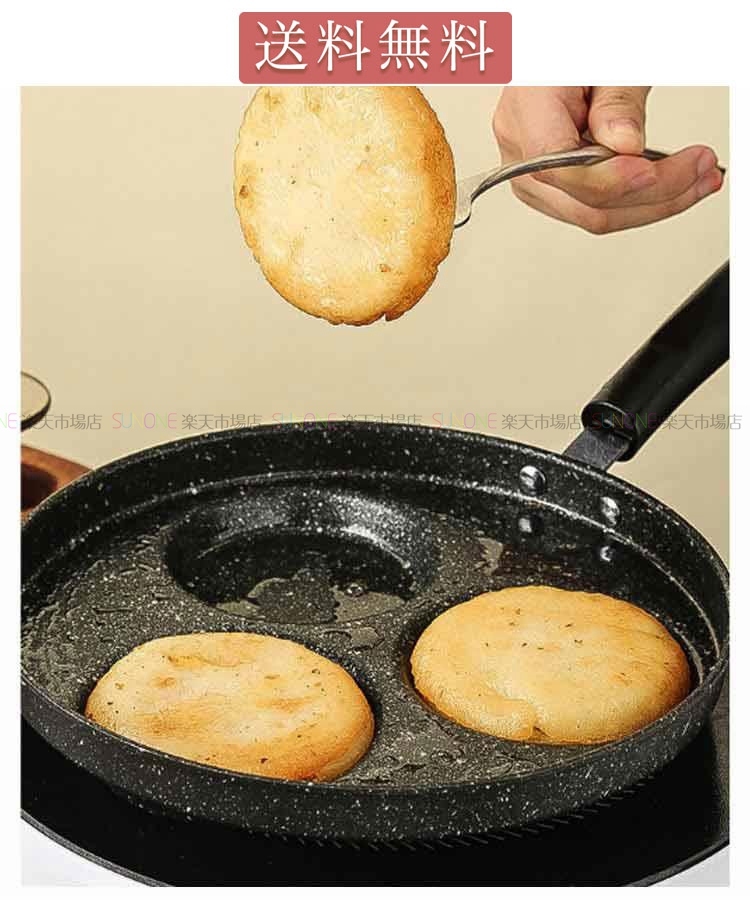 目玉焼き フライパン 仕切り付き フライパン くっつかなく 手入れ簡単 お弁当 3つ穴円形フライパン マルチパン 焦げ付きにくい 洗いやすい 大判焼き器