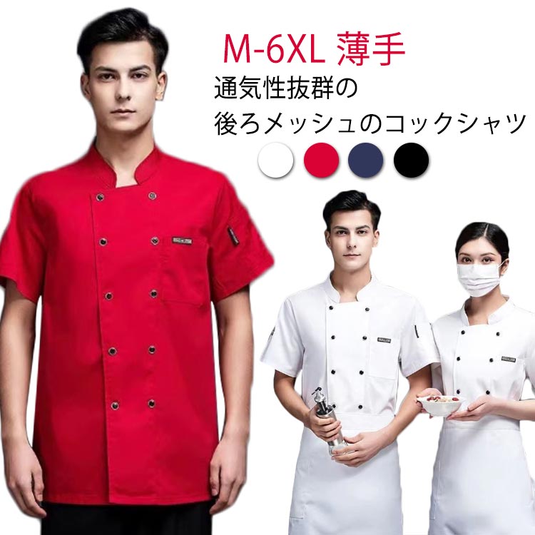 通気性 コックシャツ M~6XL 半袖 後ろメッシュデザイン 無地 男女兼用キッチン用品 食器 調理器具 業務用厨房機器 用品 業務用ユニフォーム