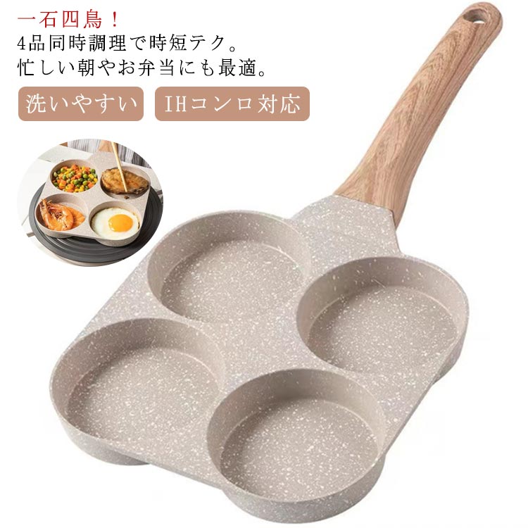 調理フライ返しと油ブラシ付き 四つ穴フライパン 朝食フライパン 目玉焼き フライパン 卵焼き器 お弁当 時短 焦げ付きにくい IH対応 お弁当作り 家庭用 業務用