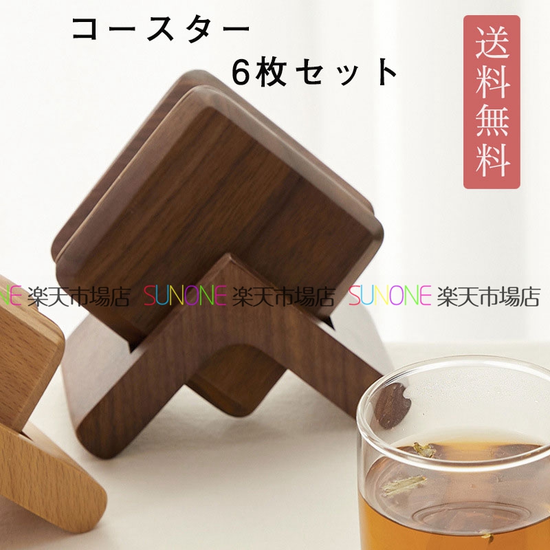 コースター 木製 6枚セット ウッドコースター おしゃれ トレー ナチュラル シンプル おうちカフェ 北欧 かわいい 天然木 クルミの木 茶托 茶たく 可愛い 受け皿 菓子皿