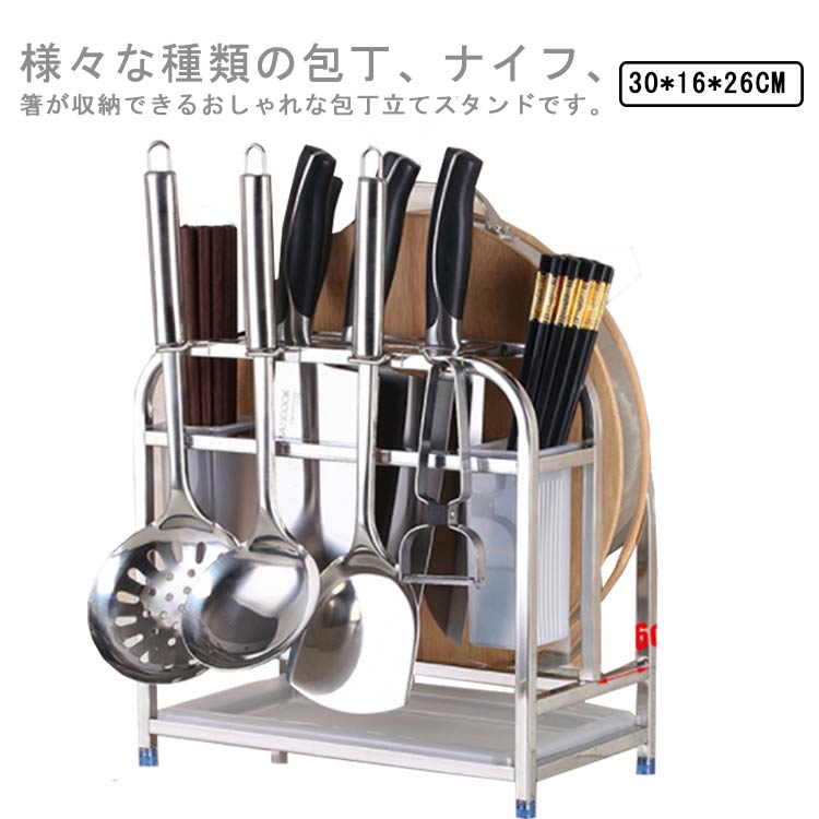 包丁スタンド 多機能 箸立て 水受けトレイ付き キッチンツール キッチン収納 省スペース 水切り 包丁立て 包丁差し 箸収納 大容量 便利 おしゃれ 箸立て ツールスタンド 包丁差しラック 包丁 はさ