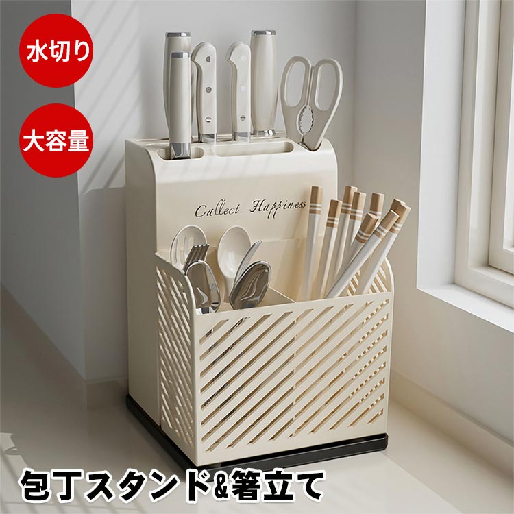 キチン収納 包丁スタンド 包丁立て 箸立て 水切りラック おしゃれ 多機能 シンプル 区域分け ハサミ 包丁 スプーン 箸箸立て