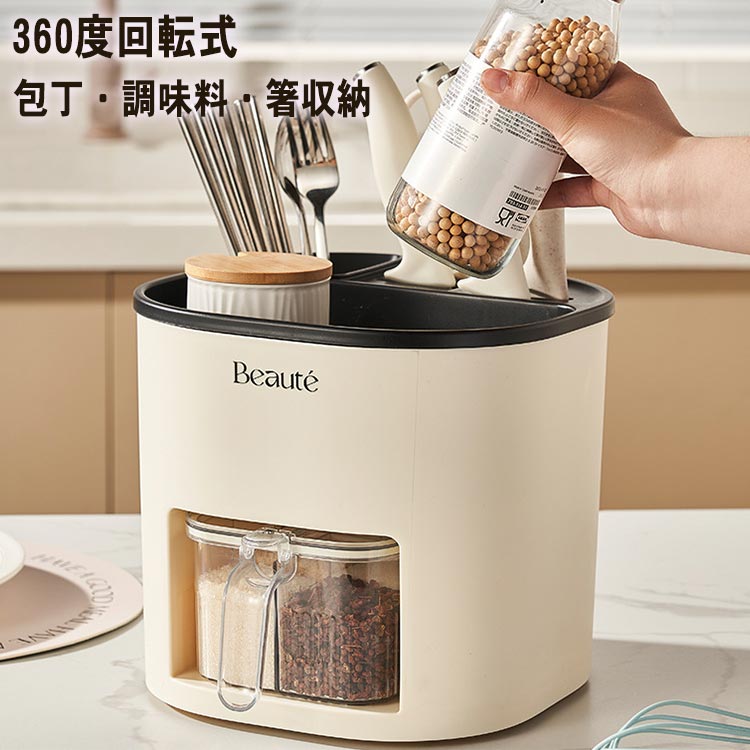 キッチン収納 包丁スタンド 調味料ラック 箸収納 スパイスラック 360度回転式 便利 おしゃれ 大容量 省スペース 水切り 箸立て ツールスタンド 多機能 調味料入れ 調味料ポット 包丁立て 引き出