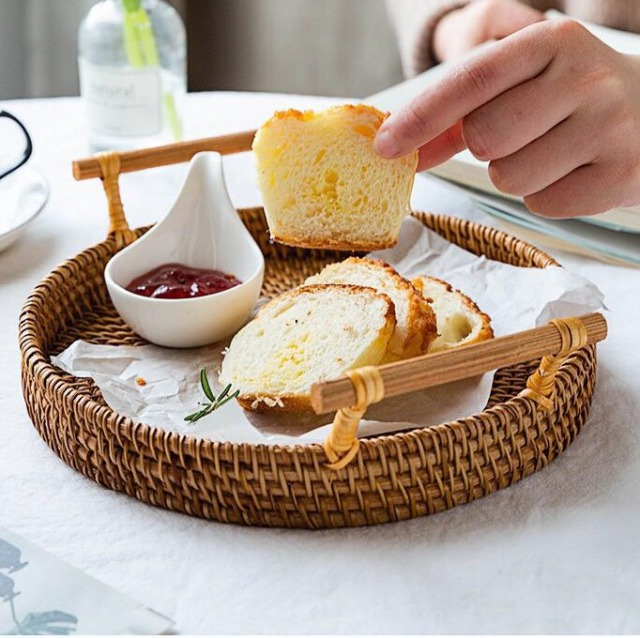 ラタントレイ取っ手おぼんトレートレイラウンド丸円インテリアおしゃれ韓国北欧カフェ小物入れ円型丸形ディスプレイバスケットかごナチュラルアジアン可愛いボウル
